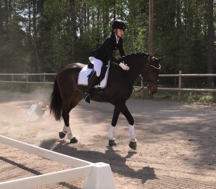 Jag var redan nu mest intresserad av dressyr så vi letade en dressyrhäst när jag blev för lång för ponnyn. Vi åkte runt i hela Sverige och provade mer än 20 hästar men hittade inget som passade mig.