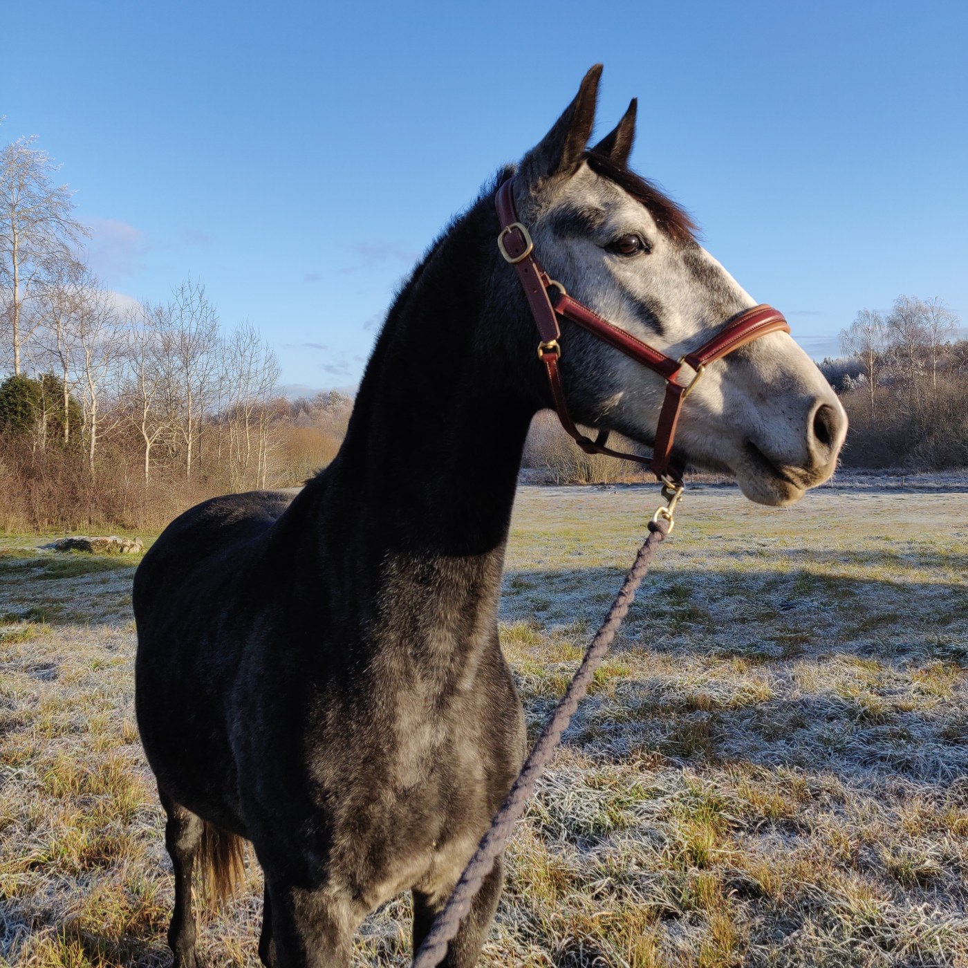 Iris anlände 1 månad efter att jag tagit bort min förra häst. Planen var verkligen inte att köpa en ny häst så tätt inpå, men ibland blir det inte riktigt som man tänkt sig. Jag ville ha en lusitano av ”rätt” linjer, helst inte alltför mycket jobbad. Det finns inte så många lusitanos till salu i Sverige, så när jag såg Iris som dessutom stod 20 min hemifrån så kändes det bara dumt att inte åka och titta på henne.