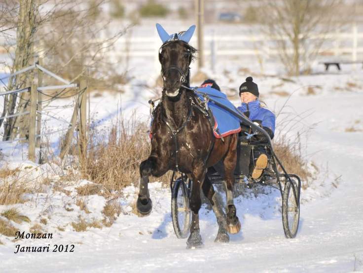 Sportkörning är som fälttävlan fast med vagn kan man säga. Tre moment ingår; dressyr, precision och maraton. Precision och maraton tyckte Monzan var lattjo. Dressyren kunde önskvärt köras långsammare enligt ett dressyrprotokoll. Och när vi körde långsammare åkte vi ut för hälta. Men närmare sanningen var att Monzan inte hade balans och styrka att springa så sakta. En träningssak… men vi lät bli. Så fortsättningsvis körde vi bara hemma för skojs skull.