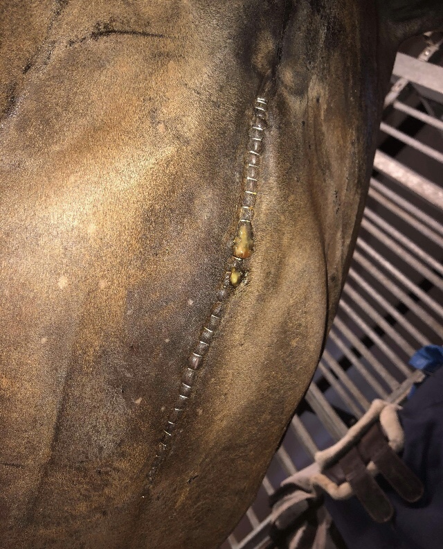 Timmarna gick och det kändes som en evighet. Tårarna bara rann. Sen ringde telefonen, ”vågar vi svara”. Kirurgen ringde och berättade att allt gått bra. Ingen tarm var skadad vilket var bra för kommande rehabilitering. Tarmen hade kilat fast i ett tomrum som finns i magen. 43 agratter syddes han med i buken och ett stort förband skulle sitta på. Strikt schema för att komma igång med mat, för att tarmen skulle jobba igen. En liten tuss hö flera gånger per dygn.