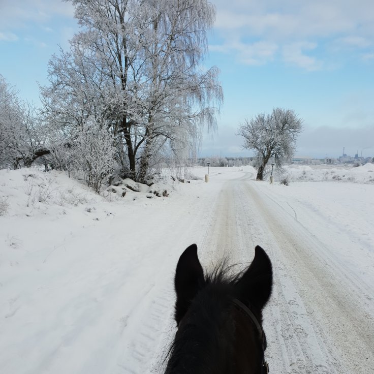 Årets kallaste dag införde vi att skritta uppsuttet en gång i veckan. Där backade vi bandet lite då det blev ett uppehåll på ca 5 månader efter att precis blivit inriden. Dessutom är han inte helt lätt att ta sig upp på utan två friska armar.