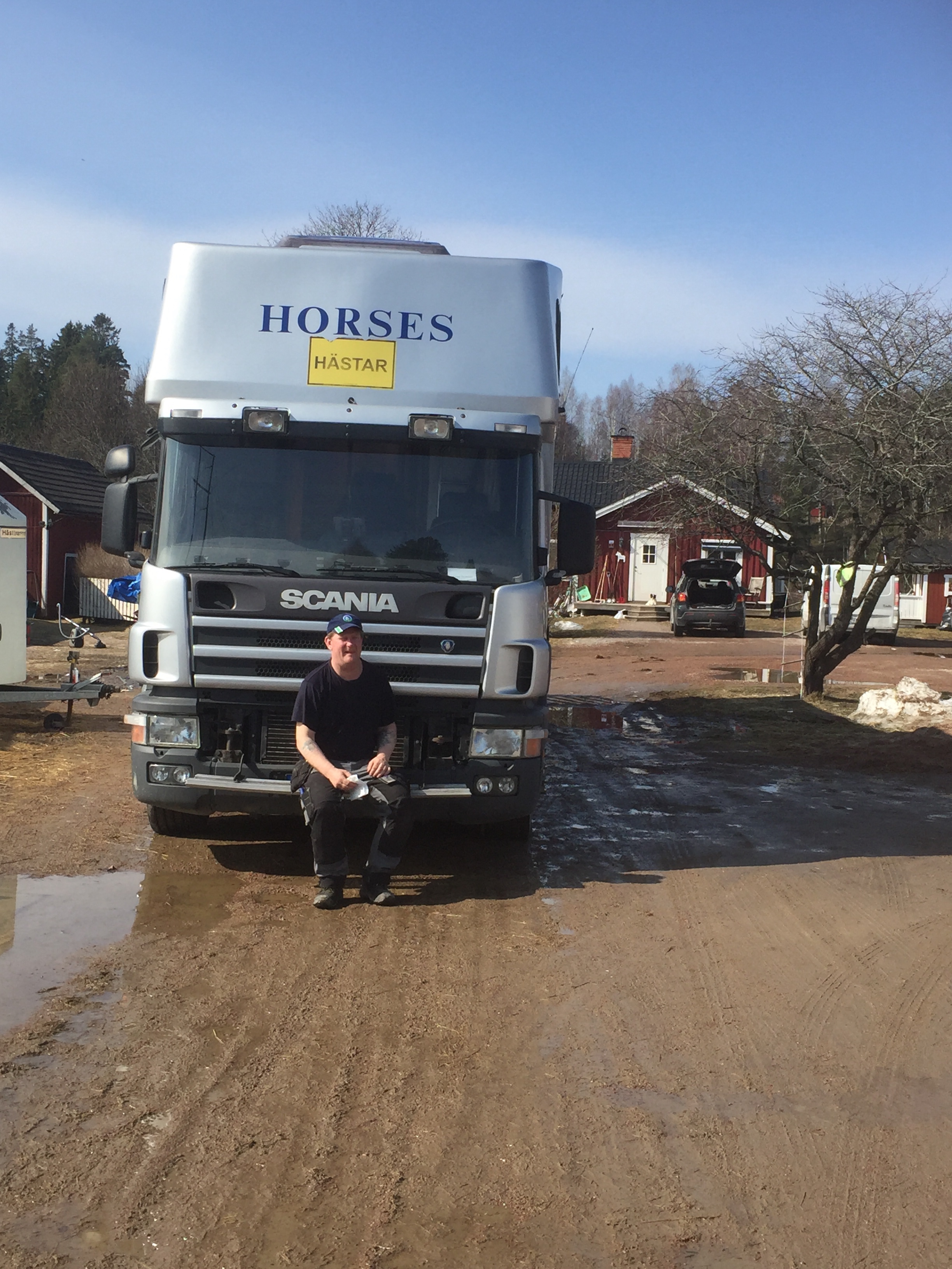 När vi kommer till träning och tävling måste men åka . Många mil blir det på ett år . Vi har en lastbil som tar 5 hästar och som har en bra bodel för oss . Den körs av pappan i familjen de är hans jobb i detta team , samt laga mat för de är vi andra lite slarviga med … hästarna först vet ni 😜