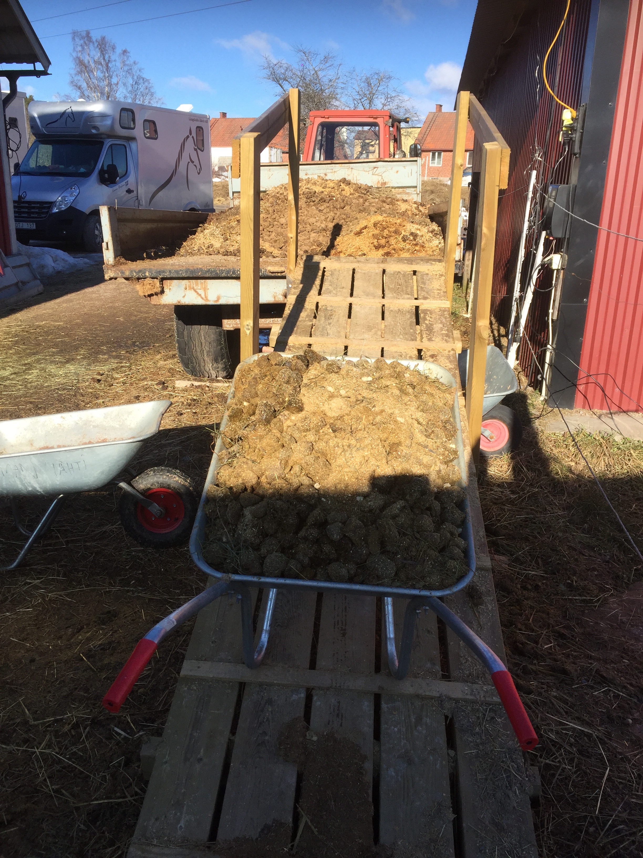 Sen mockas det 1-2 ggr per dag inne och ute i ligghallen . Mååånga skottkärror blir det med skit .