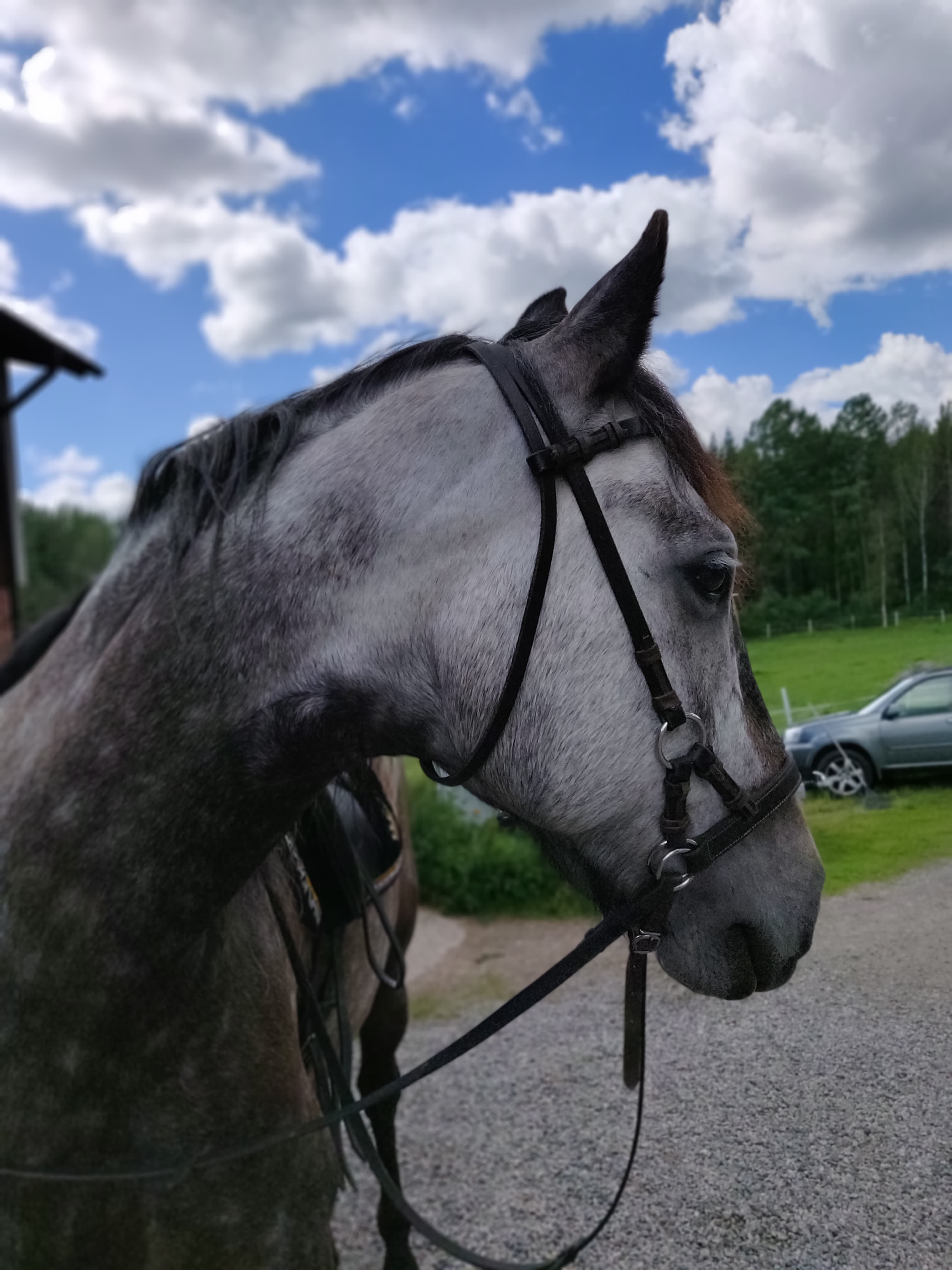 Det var lite en lite märklig känsla att rida Kariño igen, eller ovant kanske är en bättre beskrivning. Jag har i stort sett endast ridit Iris sista månaderna. Jag kan lugnt säga att det är enorm skillnad på henne och Kariño, både när det gäller temperament och i ridningen. Iris skulle jag beskriva som lite och snabb, medan Kariño i jämförelse känns stor och lite långsam. Kariño är stabil, självsäker och förlåtande men med en liten räv bakom örat, medan Iris är lite obalanserad, ibland osäker, känslig och kräver en helt annat stabilitet hos mig som ryttare. Man skulle kunna säga att i mångt och mycket är de varandras motsatser. Det de har gemensamt är att de är fantastiskt snälla och lätta att ha att göra med båda två.