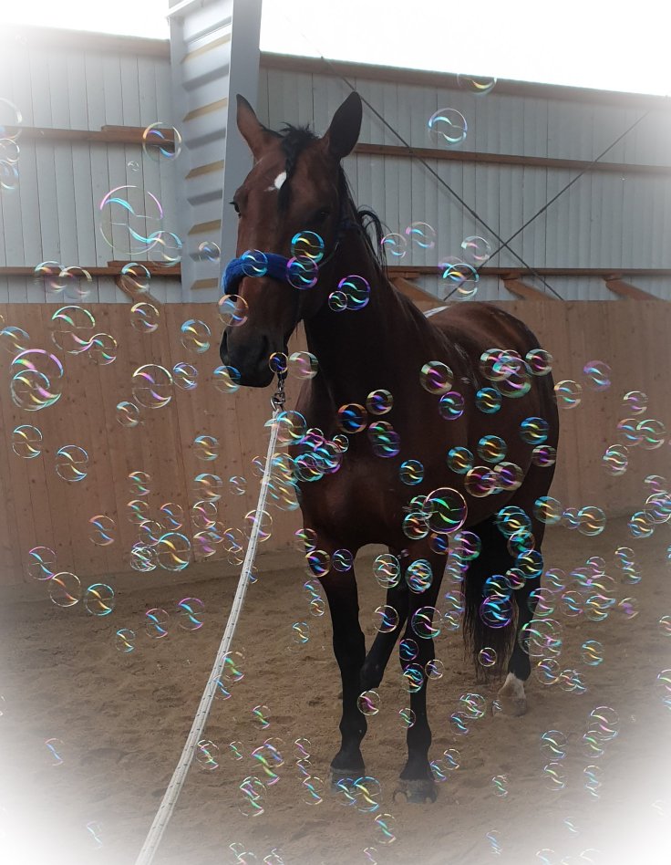 När jag är med hästarna är mitt huvud som lugnast. Då kan jag gå in i en mental bubbla och tappar lite tid och rum. Men vissa störningsmoment har jag svårt att sålla bort, och det får jag jobba med, för det medför en viss irritation över störningen som jag får in i bubblan. Och hästarna känner den.