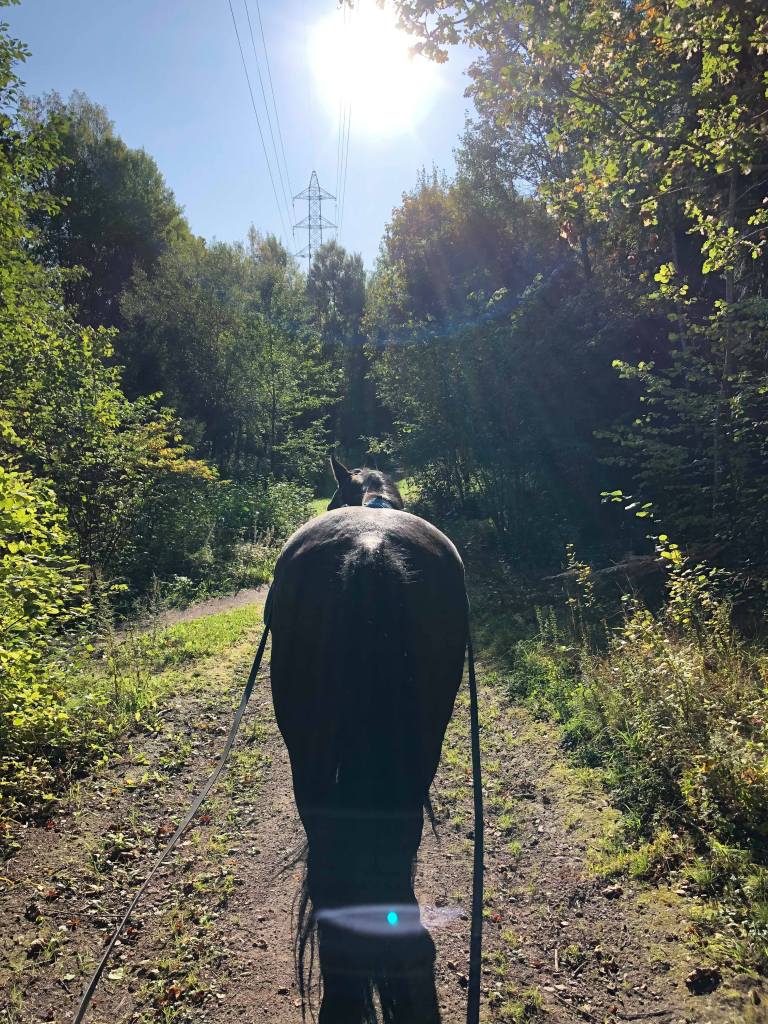 Den långa perioden av kravlöshet har också öppnat våra sinnen för att testa nya saker. Om inga tävlingar eller träningar väntar – vad passar då bättre än att experimentera med sådant man annars inte har “tid” att ändra på? Senaste veckorna rider vi t ex nästan uteslutande på sidepull, något som jag inte tidigare gett oss tid nog att vänja oss vid. Mina idéer flyger friare nu. Om han är såhär lyhörd på sidepull, hur går det då att rida i repgrimma? Och det som är svårt i repgrimma, hur kan jag öva på det? Hur långt är jag från att rida i halsring?