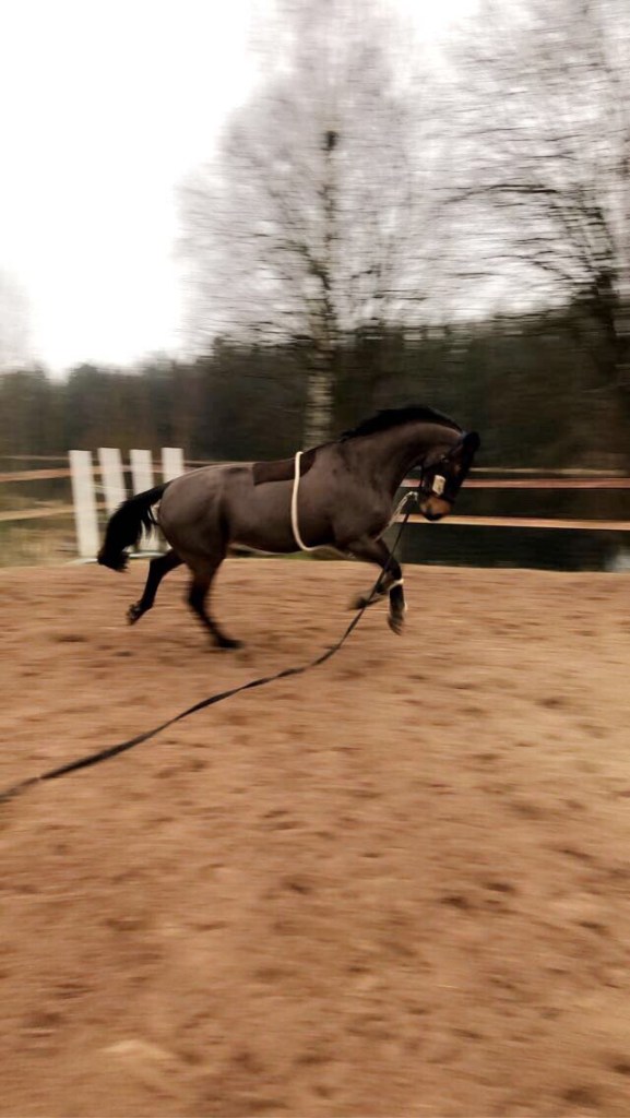 Vi jobbar fortfarande ca 3 dagar i veckan , longering med sadel vilket hon accepterar bra men måste nästan varje gång busa lite först genom lite hopp och skutt på Lina !