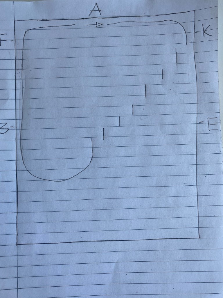 Tänk dig att varje streck jag har ritat är ett steg för hästen. Först går du 8 steg i öppnor från staketet (se bild). Sedan byter du riktning och gör 8 steg i öppnor mot staketet (se bild). När du har gjort detta en stund så tar du en paus och skrittar, travar eller galopperar runt ridbanan så hästen får sträcka ut. Sedan när du går tillbaka till övningen (om 8 steg kändes bra) så gör du 6 steg istället för 8 steg. Och byter riktning vid de sjätte steget. Jag brukar gör från 8 steg – 2 steg.