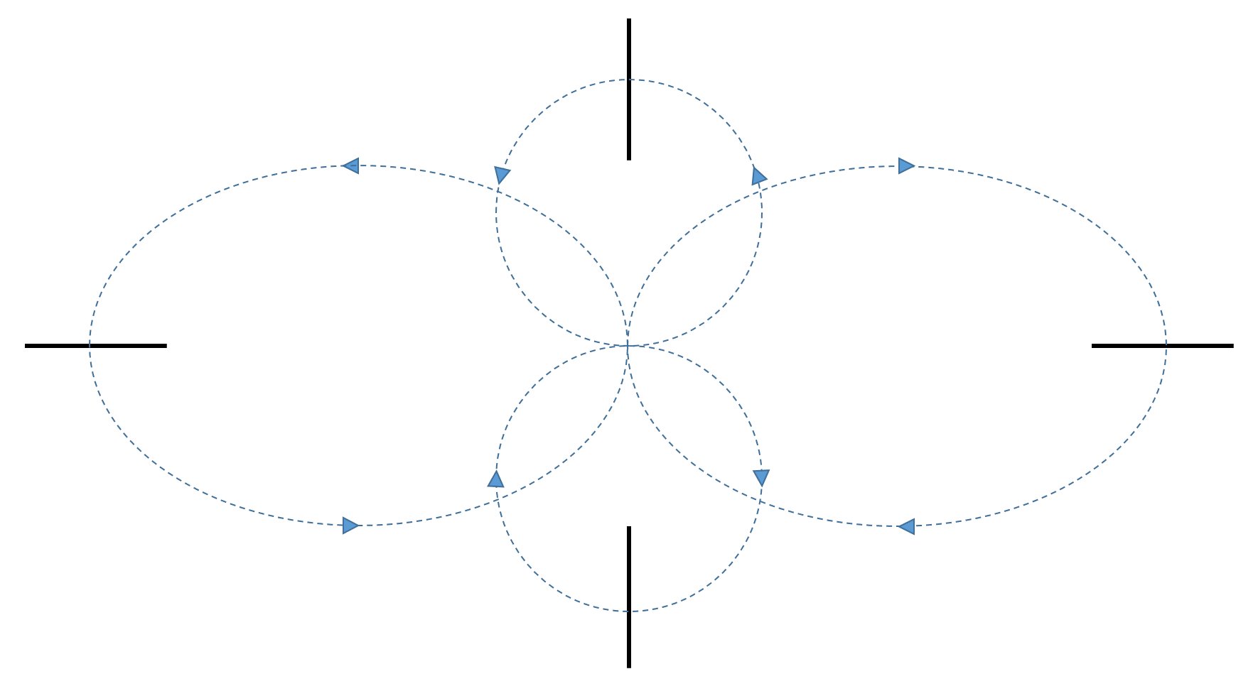 Jag lade upp denna övning enligt bilden nedan, med en bom på vardera långsida och kortsida.