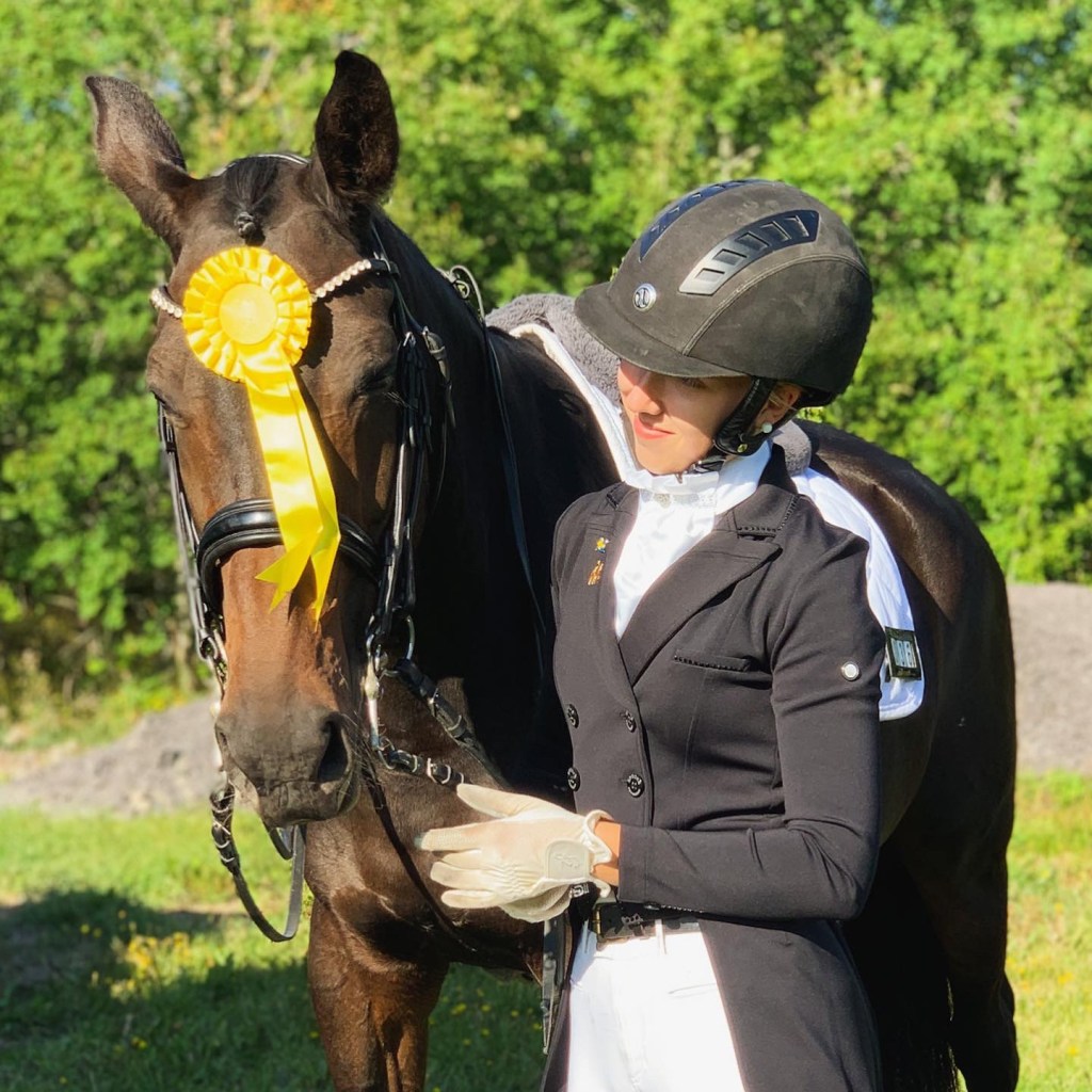 Var jättenöjd över Sonja trots en hel del missar så inga toppen procent. Vi slutade iallafall på 64,4% i våran första kür som räckte till en vinst.Avslutningen från küren som tyvärr blev lite överladdad men vilken häst jag har.😍Igår debuterade vi även MSV A och det slutade med en tredjeplacering. SÅÅ nöjd över Sonja verkligen jättefin emellan åt men mycket kvar att träna på. Fina ord från domarna och en domare hade oss på nästan 66%. Många missar i galoppen men bara att träna vidare så sitter det snart.