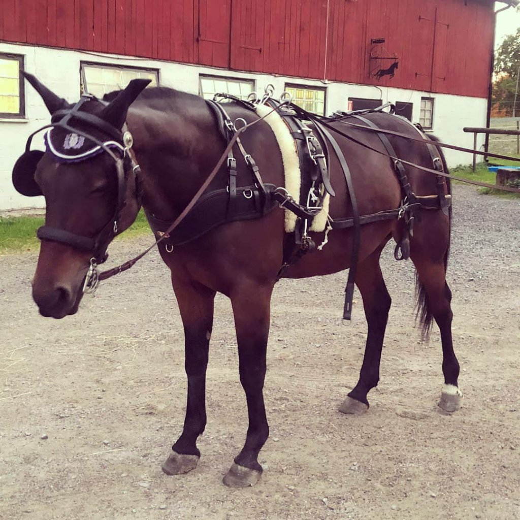 Som travhäst är uppgiften ganska enkel. Man drar en relativt lätt vagn, oftast rakt fram (eller stora svängar) och där målet är att springa fort. Utrustningen är således anpassad för det. Nu ska Grodan lära om till sportkörning. Selen är annorlunda. Draglinor och baksele är helt nytt för honom. Vagnen är betydligt tyngre (*läs precis allting är tyngre) och skramlar mera. Det blir per automatik ett annat sätt att dra vagnen på. Dessutom är momenten indelade i dressyr, precision och maraton. Springa fint, springa fort, vara stark och smidig, uthållig och ha ett samspel. Vi har en del att jobba på 😁. Men på 2 veckor har vi gått från 0 till de första trevande travstegen i vagn.