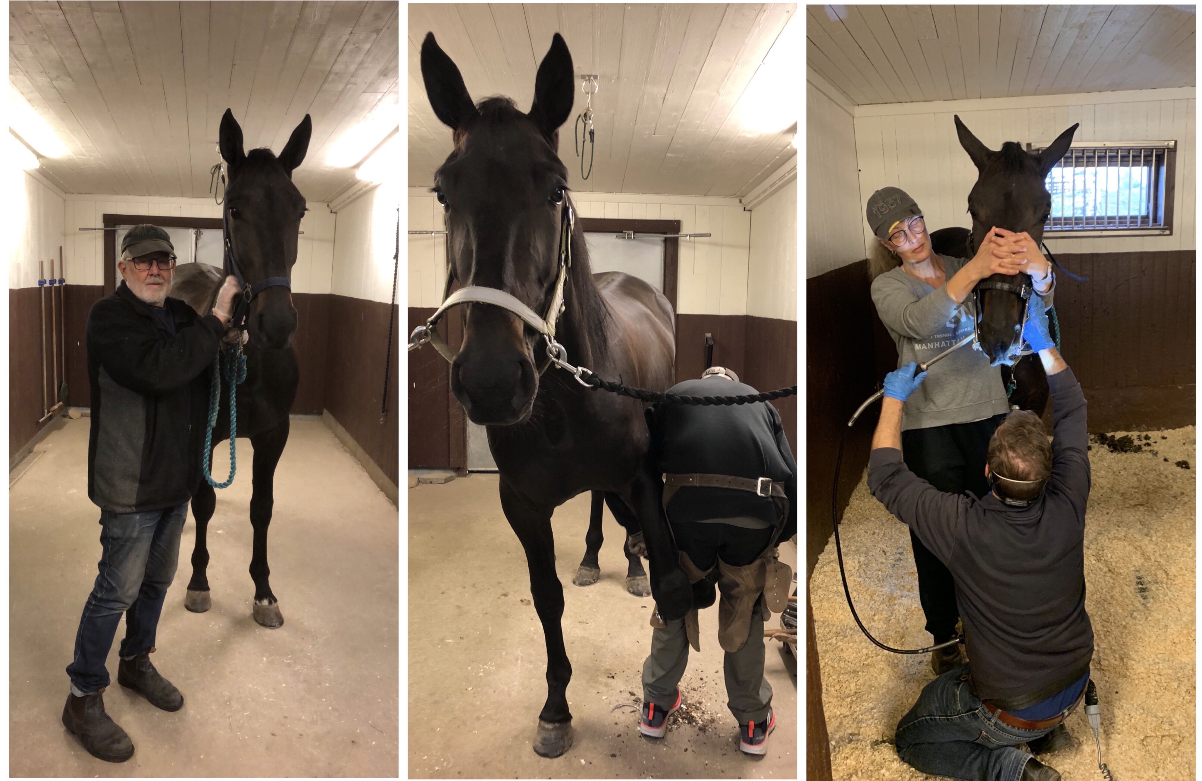 Greyzone har fått träffa veterinären för en första tandkontroll och även hovslagaren och det gick bra. Kjell har känt lite på honom även om det inte finns några spänningar än, utan mest för att få en uppfattning om hur han är i kroppen just nu.