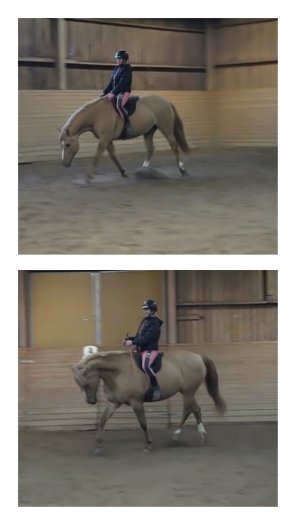 ⭐️Hästen skjuter på med sin bakdel när den går i övergång från