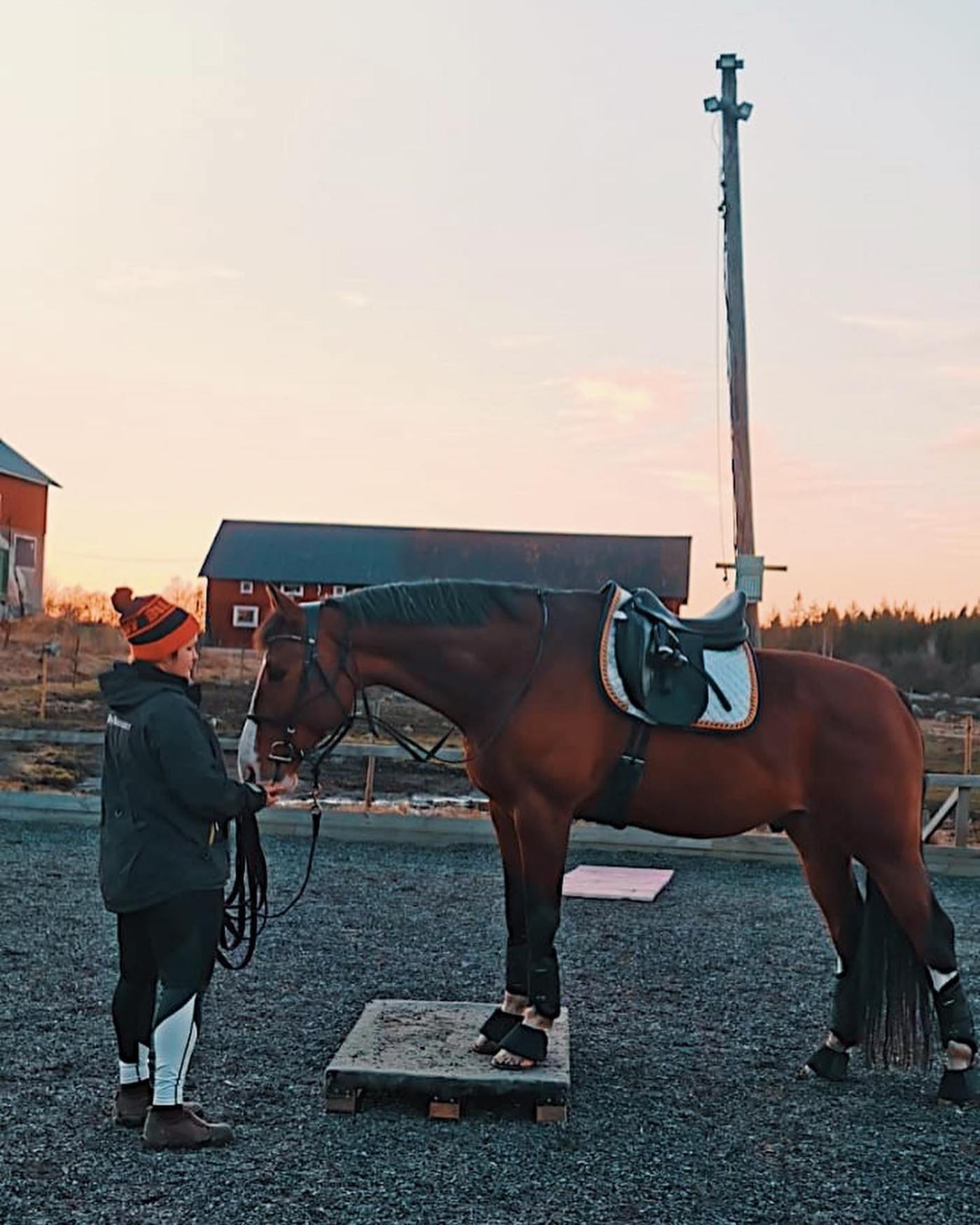 Vartefter miljöerna hemma på Billby började bli bekanta kunde vi vidga vyerna – ta oss till nya hagar eller ridbana för att träna på samma moment där. Den ständiga frågan: Kan du vänligen lyssna på mig, även när du missförstår eller är rädd? Jag lovar att hålla dig säker.