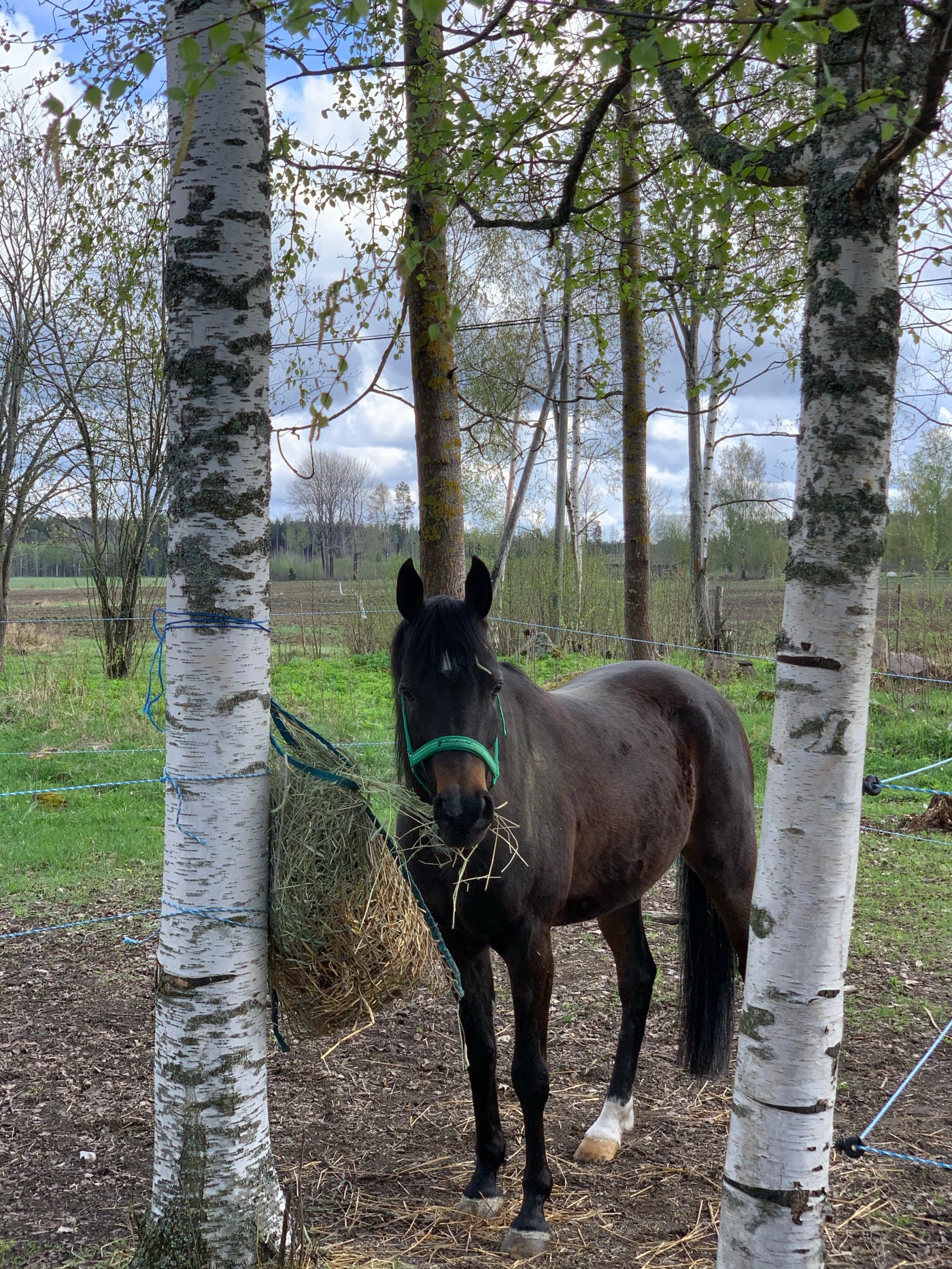 Den 12 maj fick Virre lämna sin box för första gången efter 11 veckor. Han fick gå ut i en lite hage och äta hö ur ett hönät. I den lilla hagen firade han sin midsommar och i den kommer han få stå många veckor till. Virre är fortsatt haltfrk och rör sig utan anmärkning i både skritt och trav. Har inga problem att svänga snävt åt varken höger eller vänster. Det är mycket bra men dock har han fortfarande smärta i sin hov. Det visar sig tydligt när sulan utsätts för tryck med visitertång. Hovslagaren är ut och verkar Virre var fjärde vecka och använder då visitertång för att se hur ”hoven” mår. Hoven växer som den ska och den korrigering hovslagare gör har rätt effekt men dock finns smärta kvar. Dock finns det som sagt smärta kvar och den kan vi bara vänta ut. Den beror på att hovbenet ligger så ”fel” fortfarande och för att det skall försvinna hjälper bara tid. Tiden så att hoven skall få växa ”till sig” efter hovbenets läge, helt enkelt fixa till rotationen som har uppståt. Eftersom Virre hade en omfattande rotation så tar det tid och under den tiden måste han röra på sig så lite som möjligt men ändå må bra. Till er läsare så finns det olika rehabplaner gällande fånghästar. Detta är Virres plan vilket baserar sig på hans förutsättningar och behov.