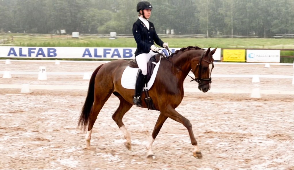 Igår gjorde vi våran andra start tillsammans och denna gång i spöregn och en ridbana som var som en sjö. Vi börjar travprogrammet väldigt bra med flera 8or och 7or men sen till galoppen blev det för tungt och jobbigt pga underlaget så jag valde att utgå. Men wow vilken häst det här är!. Vi är trots nöjda att hon skötte sig så bra och inte var rädd för någonting. Vi fick trots allt väldigt fina lovord från domaren så det är bara att ta nya tag och komma igen.