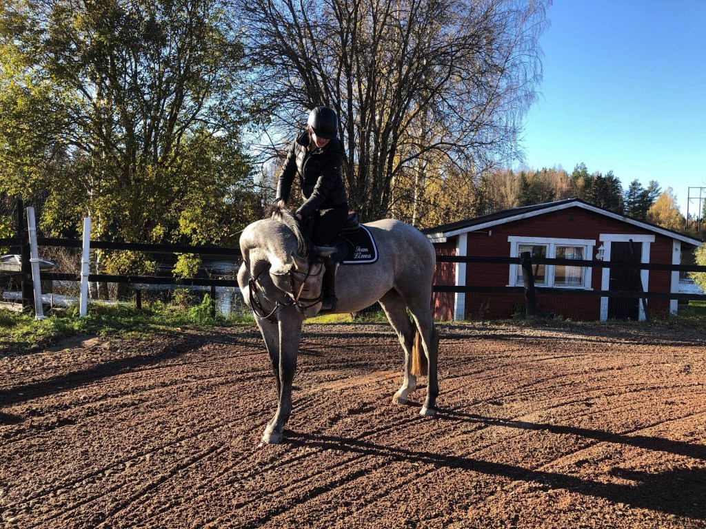 Vi har påbörjat tömkörning med rakriktning som det första momentet, och att förstår styrning och vad vi vill att han ska göra. Han är jobbad med Långtygling när han reds in av Jim. Longering varvat med markarbete förhand i grimma grimskaft samt att vi tagit upp ridningen igen .