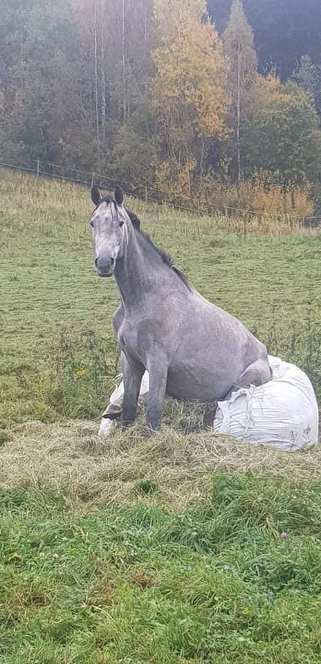 Under dessa år har han roat många förbipasserande i både bil och dom som promenerar förbi . Han gillar nämnligen att sitta mjukt 😂 använder sin hö /hösilage bal som en stor Sackosäck .