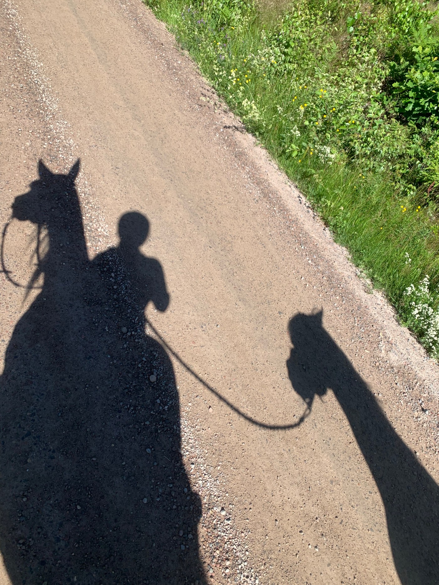 För det tredje så fortsätter Virre att följa med som handhäst och vi har till och med prova att galoppera. Första sträckan gick super bra. Andra sträckan tyckte Virre det gick lite sakta, vilket resulterade i att vi inte var överens om tempot. Lite mer träning så kommer nog även det att fungera, skam den som ger sig.
