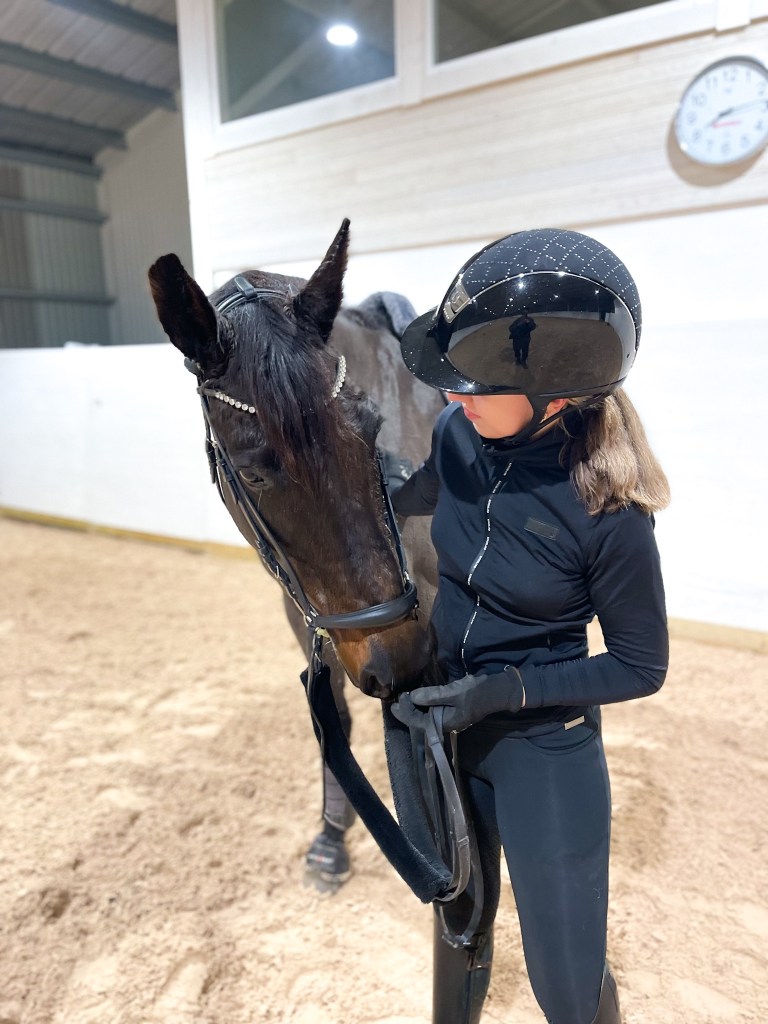 Dag 1: Dressyr trÀning för min trÀnare Fredrik Böhling eller sjÀlv beroende pÄ vilken vecka det Àr. Vi börjar nu att ta upp Sonja lite mer i formen, rida mycket skolor och börjar sakta men sÀkert komma tillbaka till tÀvlingsformen. Vi lÀgger in mycket skrittpauser i arbetet.
