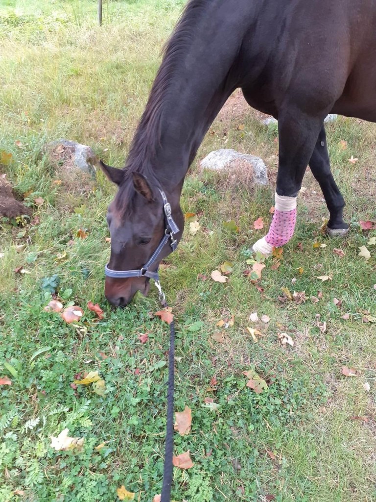 “Din häst har opererats för en griffelbensfraktur” står det i journalen från en måndag i början av september. Det här med att veta vad hästen gör tre-fyra timmar om dygnet och hoppas på att hon tar kloka beslut övrig tid. Ibland blir det bara inte som man tänkt sig. Ella hamnade i en sådan ojdåhoppsan i försomras. En av följderna, en blödning i ett förstärkningsband, började läka enligt plan, medan en annan av följderna hade egna idéer som inte alls matchade vad veterinären och jag tyckte utifrån initial röntgen. I mitten av augusti hade ett överben på griffelbenet på utsidan av vänster fram utvecklats till en griffelbensfraktur, som i sin tur orsakade en svullnad på gaffelbandet. Vid det klinikbesöket, det tredje efter skadetillfället, konstaterade veterinären om Ella att “hon kan inte bli bra utan operation, men hon KAN bli bra med operation.”