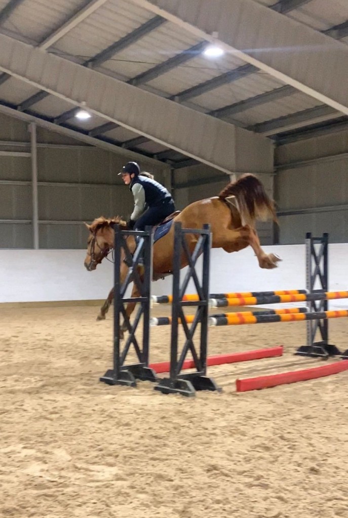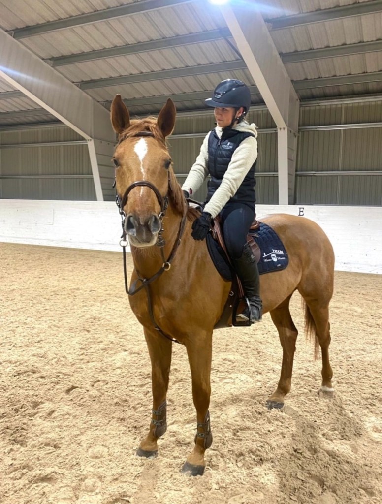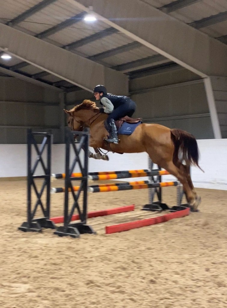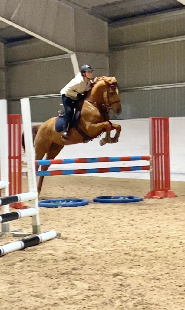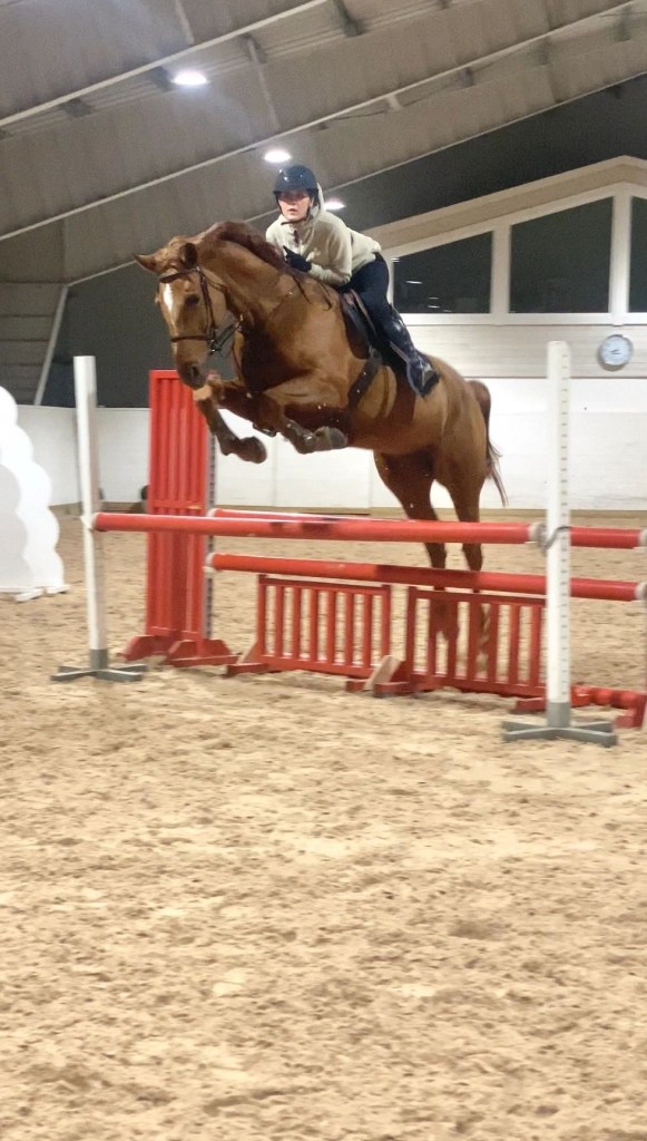 Man märker också att bjudningen har förbättras otroligt mycket – ibland lite för mycket. Nu blir hon väldigt väldigt sällan bakom lod och handbroms i. Det nya vi tränar på att hon är kvar hos mig i hoppningen och inte springer ifrån mig – vilket nästan är motsatsen till vad vi tränade på i somras då hon behövde ridas mycket framåt.