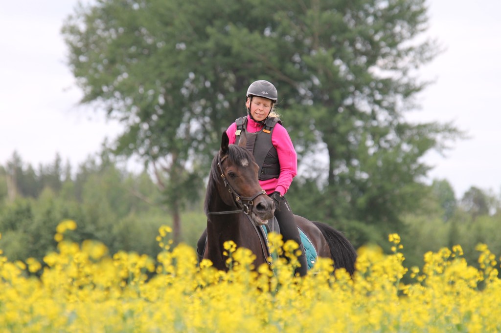Virres sommar har flutit på bra men han tycket dock att matte har varit lite snål med det gröna gräset. Träningsmässigt har Virre jobbat på bra. Vi har dock inte lyckats nå målet att jag kan sitta upp på honom själv utan jag har fortfarande stöd av min särbo att sitta upp. Målet att sitta upp och av själv, kommer jag fortsätta att sträva mot. Det kommer att göra det lite lättare att lyckas med ridträningen eftersom det blir färre parametrar att ta hänsyn till. För stunden så har vi en utmaning i att det är så mycket mygg och det är inte lätt för Virre att hantera. Han blir väldigt stressad av mygg och knott vilket gör att det knappt går att träna. Den senaste två veckorna har Virre fått träna i sitt myggtäcke för utan det får han panik. Det gäller att vara flexibel i sin träning och se lösningar istället för hinder. Nu hoppas vi att myggen och knotten snar ger upp och att hösten kan bjuda på fina träningsdagar.