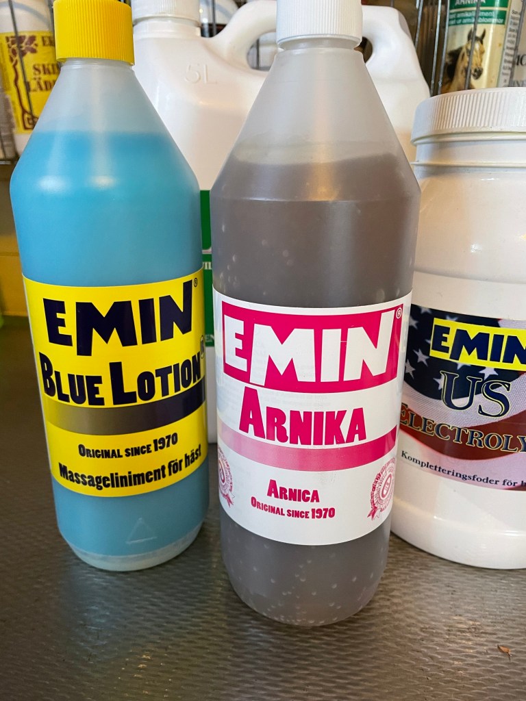Något som är lika viktig som träningen är återhämtningen. Dom får alltid elektrolyter i fodret och vi smörjer benen med kyla efter varje träningspass, efter någon timme smörjer vi också med Arnica. När dom gått ett hårdare pass lindar vi benen över natten. Det här upplägget passar oss och våra hästar bra.