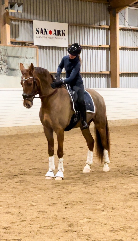 Nu har vi även börjar dressyrtränat för Fredrik igen och det känns jättebra att kunna stämma av med honom och dessutom att jag också får hjälp då jag känner mig väldigt ringrostig😂