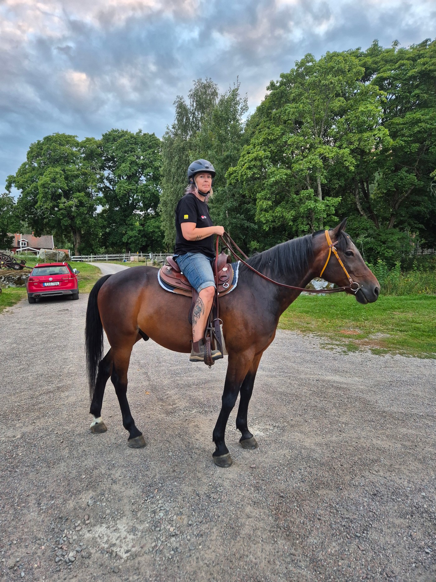 Eddie, som är fullt nöjd med att vara förtidspensionär, fortsätter att vara det. Han har andra uppgifter i livet. Men Grodan som inte är fullt lika nöjd med att vara overksam har fått axla rollen som min lärohäst. Han är inriden men inte utbildad så det passar ju fint att jag kan lära honom grunderna med lite coachning. När det senare sitter så kan vi tillsammans utbilda oss vidare. Vart det leder vet ingen, men i det här fallet är det mer resan som är målet. Så, häng med om ni vill 😅