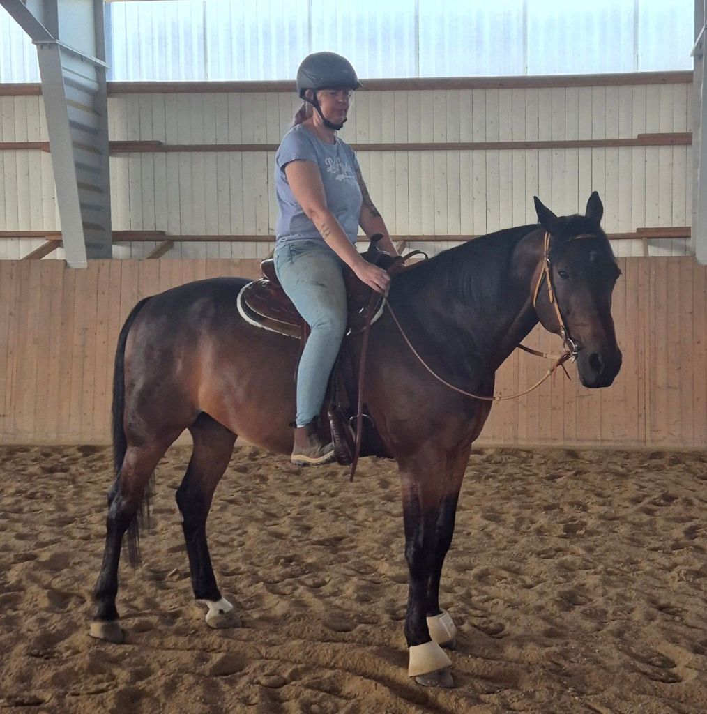 Grunder. Start, stopp, back. Flytt av fram- och bakdel och en hel del sidvärtsrörelser. Gör det enkelt för hästen att förstå vad du vill. Det går sakta men säkert framåt och vi har börjat att göra korta travsträckor med fokus på övergångar. Där saknas styrkan att hålla ihop kroppen än sålänge.