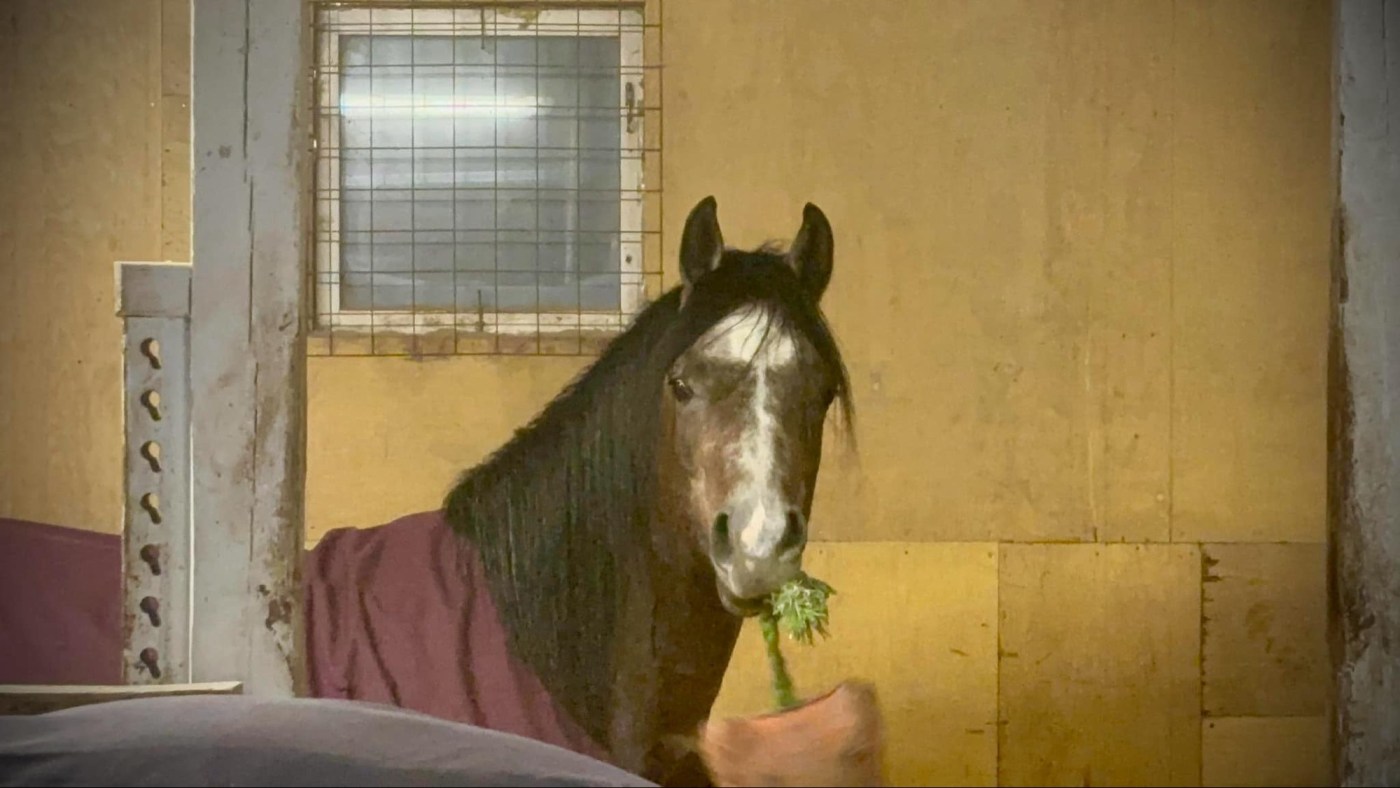Megalo som var den trygga punkten för Shaqib under både hem och dit resan, har även han tagit skada av traumat. Efter skadan ökade hans behov att vaka över flocken, att se att alla är trygg, att veta vad alla gör och att be honom lämna gårdsplan var svårt. Megalo följde lydigt med när jag bad honom att lämna stallet och gå ut på promenad. Men han gick upp snabbt i stress och bar av att möta en bil fick honom att komma över gränsen mot känslan av flykt. Att se honom hamna i flykt, att se honom oroa sig för vad som händer i stallet när han inte är där, är det obeskrivligt. Även han lider av separationsångest. Han behöver hjälp och stöd för att bygga upp tryggheten igen för att se att det är inget farligt att lämna flocken. Flocken kommer att bestå. Steg för steg måste vi bygga upp hans trygghet igen.
