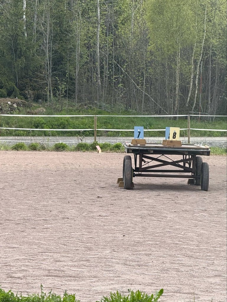 Fick några få straff där då han drogs mot de grenarna av bla gran som var snett framför mulen. Sen vidare o trav som förvandlades till galopp. Fick tillbaka honom rätt snabbt. Sen skritt o köra in i port. Där kände jag att jag inte hade någon koll på vagnen. Trots allt felfritt. Och vidare till lastbryggan på lastning. Gick bra. Vända på sidoväg katastrof.